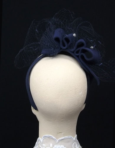 Gorgeous Navt Velour Felt Swirled in vintage, navy silk
