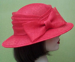 The round crown is accented by an assymetrical sinamay wrap
