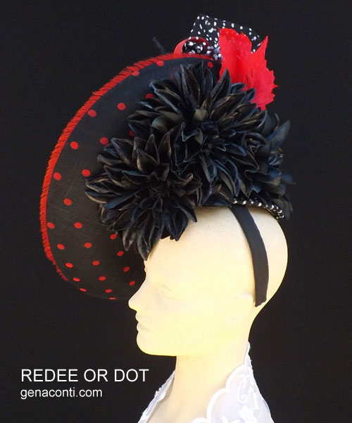 and sculpted black and red sinamay looped bows.